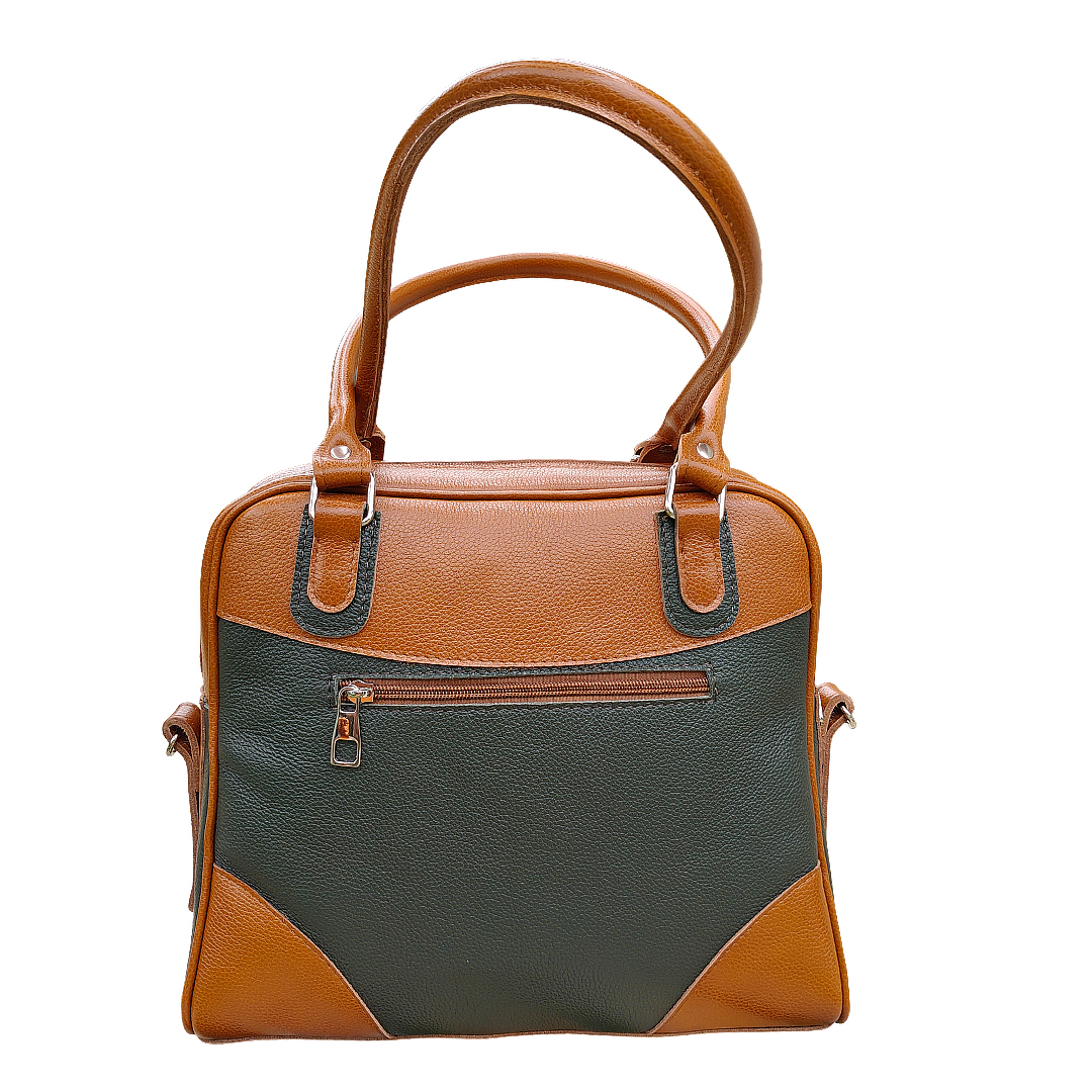 Geanta din piele naturala, eleganta, doua compartimente interior, buzunar exterior cu fermoar, maner lung detasabil.