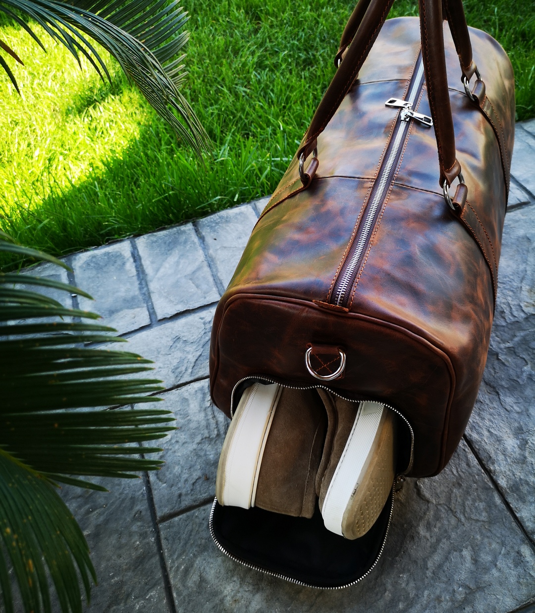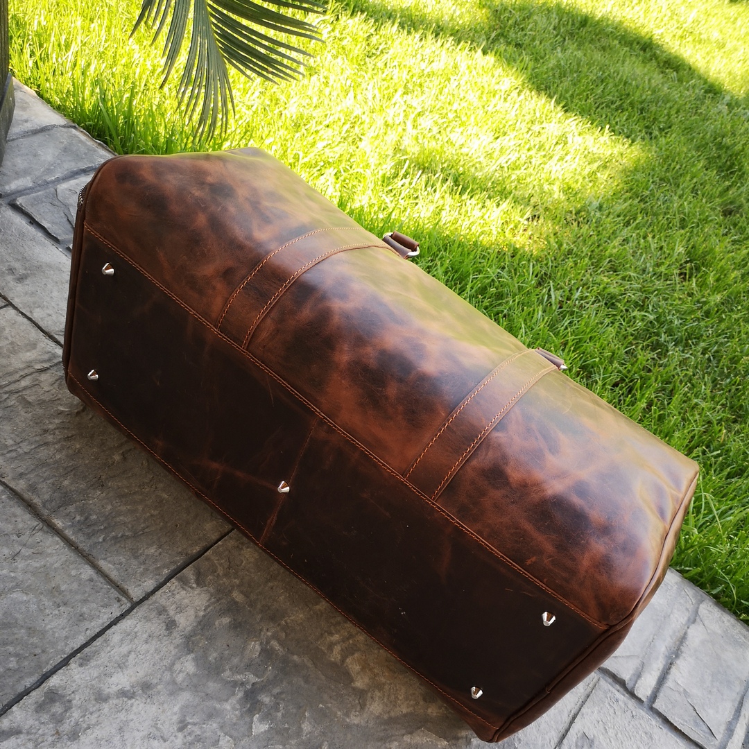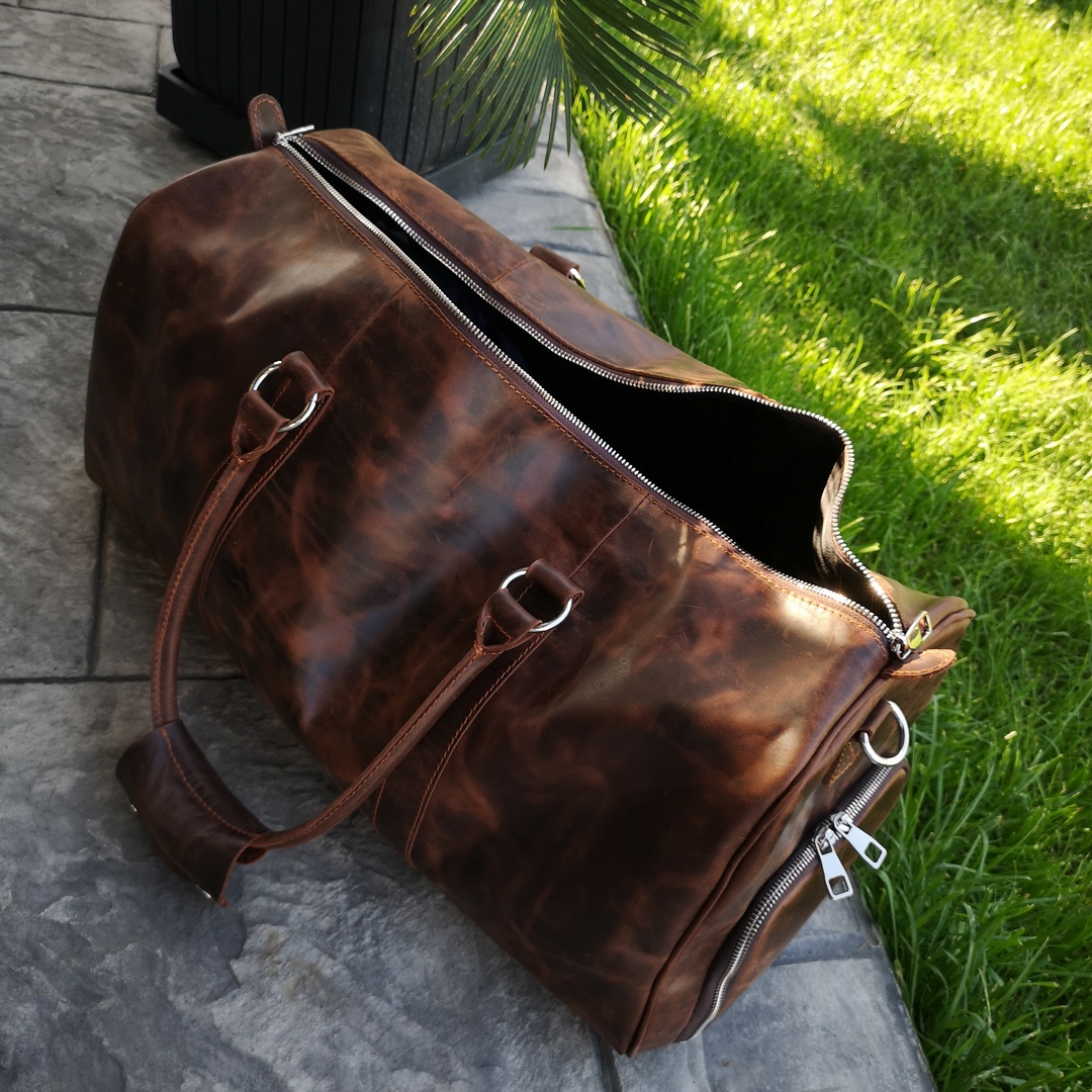 Această geantă de călătorie sau sport este realizată manual din piele naturală premium, oferind un aspect rafinat și o rezistență excepțională. Designul său versatil o face alegerea ideală atât pentru escapade de weekend, cât și pentru activități sportive zilnice.