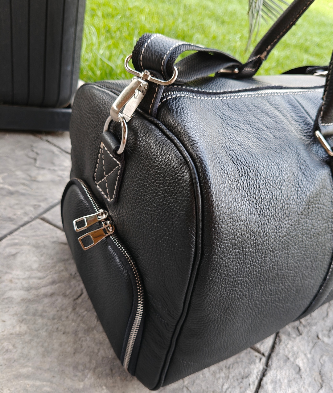 Această geantă de călătorie sau sport este realizată manual din piele naturală premium, oferind un aspect rafinat și o rezistență excepțională. Designul său versatil o face alegerea ideală atât pentru escapade de weekend, cât și pentru activități sportive zilnice.